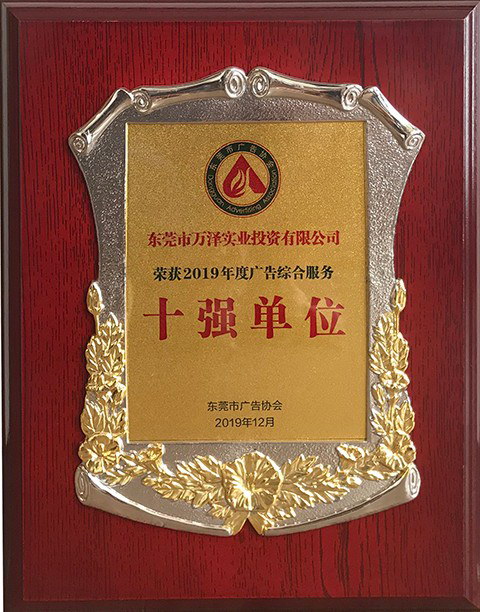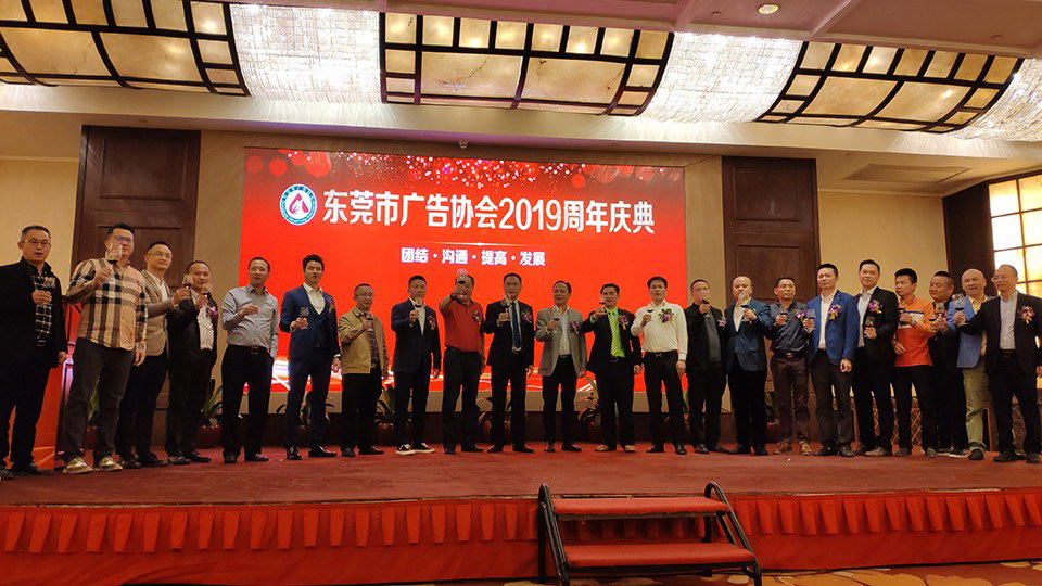 2019年12月11日,东莞市广告协会2019会员大会暨换届选举大会及周年庆典活动在厚街嘉华酒店举行。我司作为副会长候选人单位受邀参加此次庆典,成功竞评为“东莞市广告协会副会长单位”,并荣获“2019年度东莞市广告行业先进单位”、“2019年度广告综合服务十强单位”、“2019年度媒体服务十强单位”的表彰。