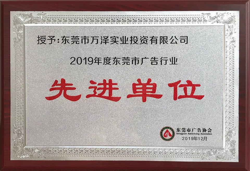 ▲ 2019年度东莞市广告行业先进单位