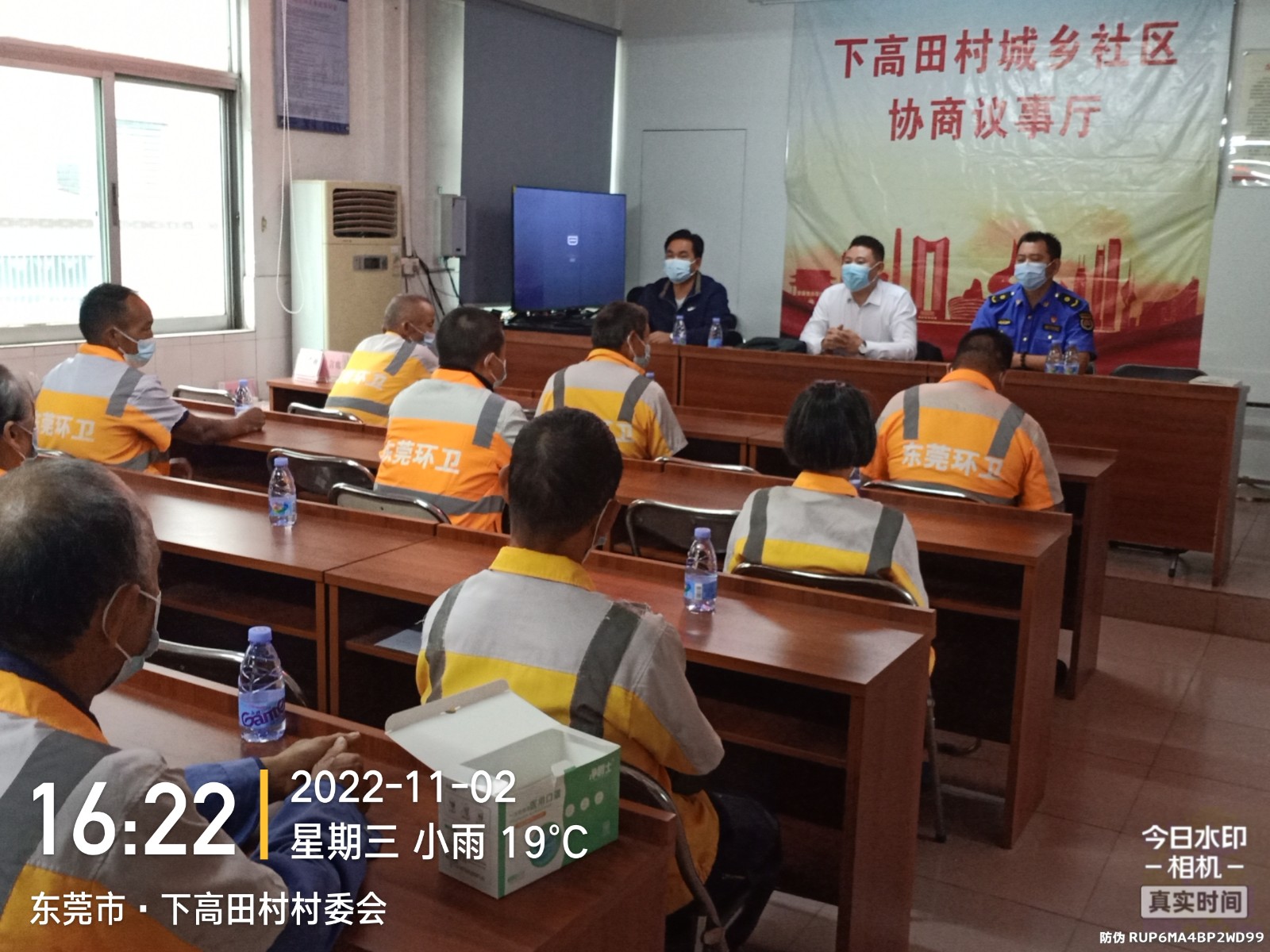 为了提升广大环卫职工的安全意识,增强自我保护意识,预防工伤事故的发生,11月2日,我司大岭山项目举办了环卫工人工伤预防培训会。培训会由大岭山城管分局组织,大岭山镇元岭、下高田村委领导及我司50名大岭山项目一线环卫工参与了此次培训会。