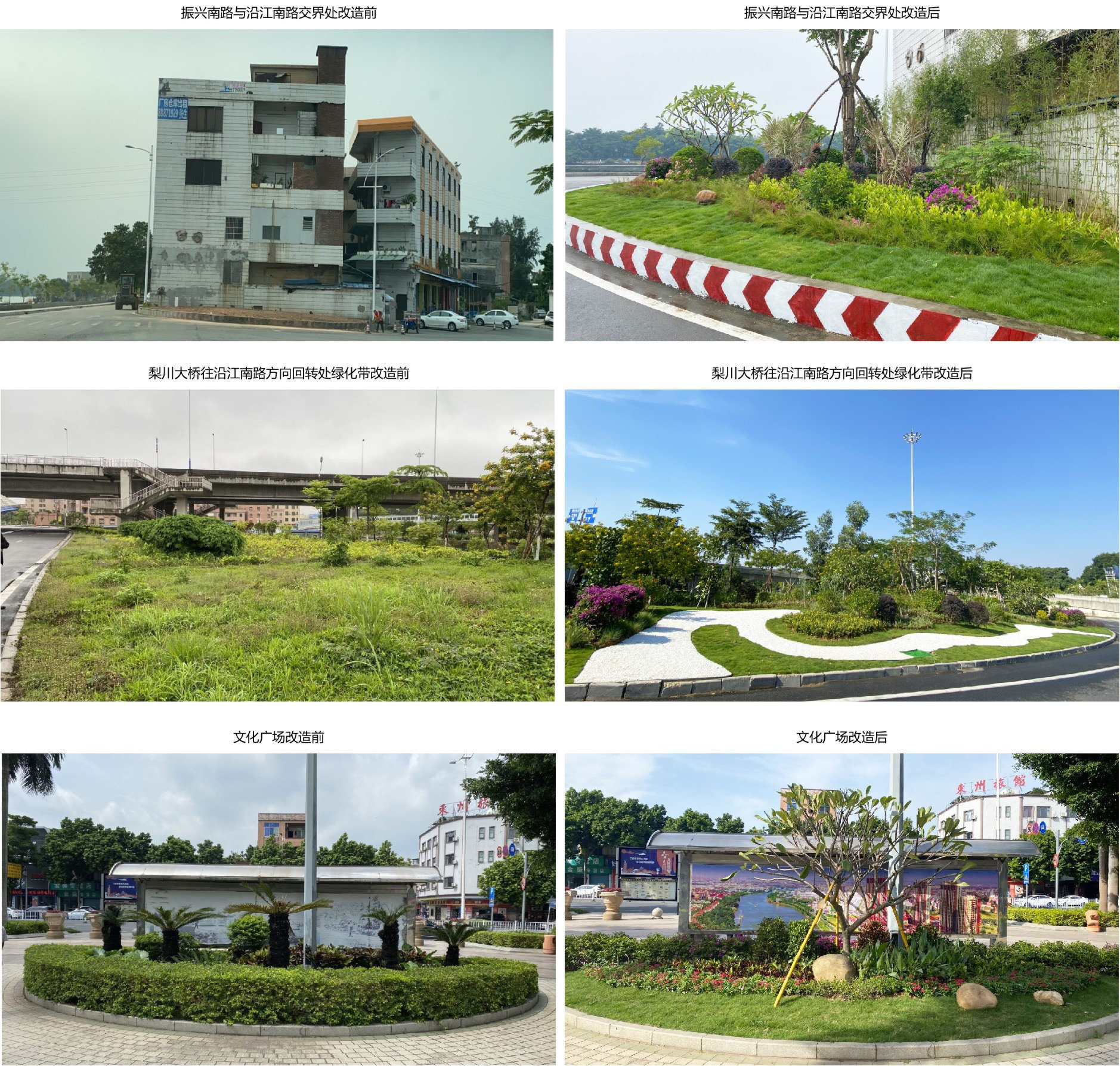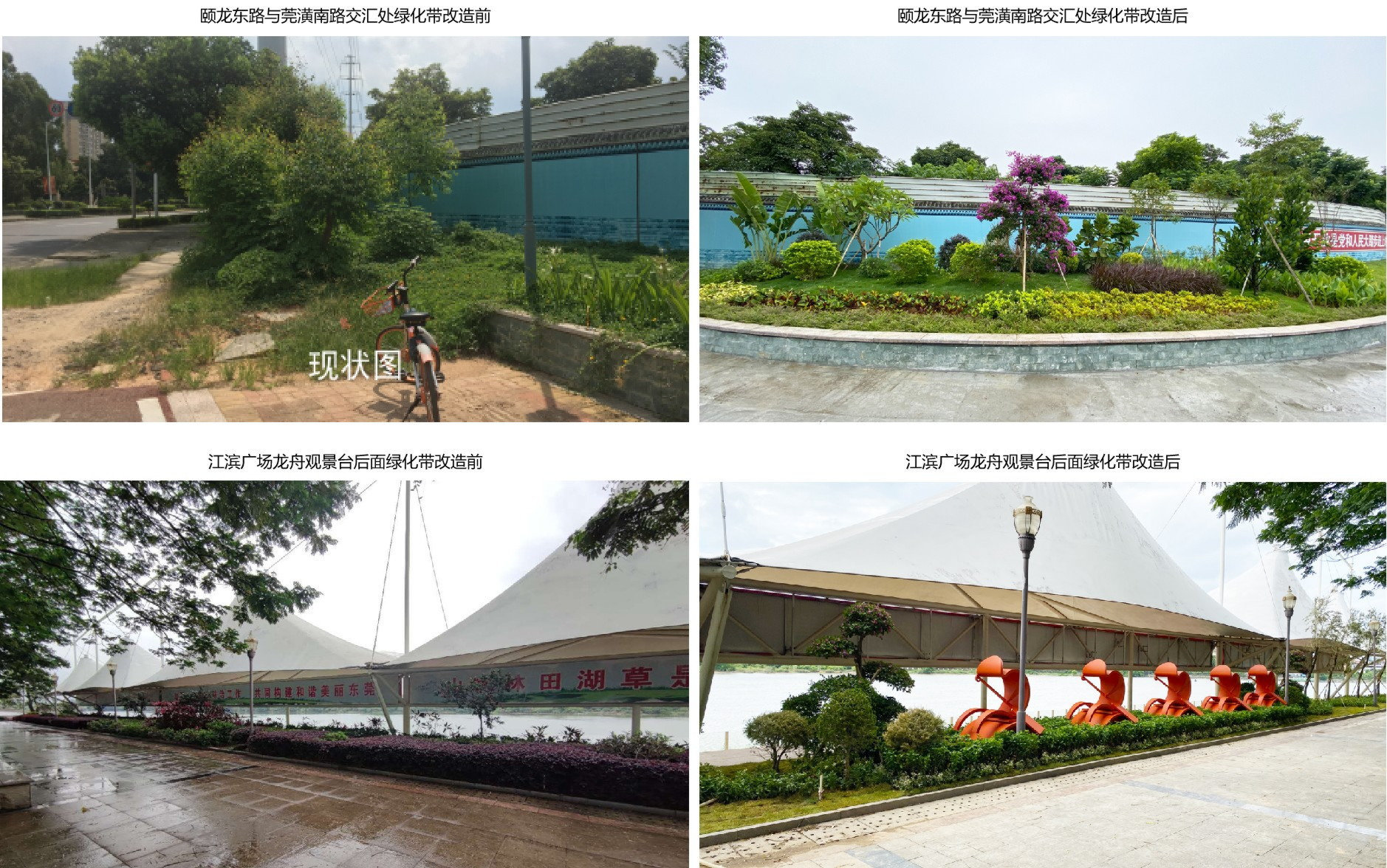 ▶ 项目地点:高埗镇 梨川大桥往沿江南路方向回转处绿化带、振兴南路与沿江南路交汇处半圆绿化带、颐龙东路与莞潢南路交汇处绿化带、江滨广场龙舟观景台后面绿化带、文化广场绿化带,涉及5个街头小景的升级改造